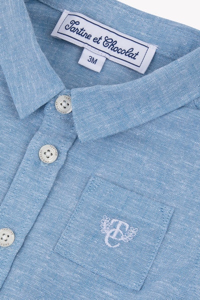Crafted from a refined linen-cotton blend, this elegant shirt features a distinctive baby collar that adds timeless charm to any wardrobe. The soft blue hue offers versatility for both casual and refined occasions, while the breathable fabric ensures comfort throughout the day. Perfect for layering or wearing solo, this piece combines classic design with modern sensibility, making it an essential addition to a discerning closet.