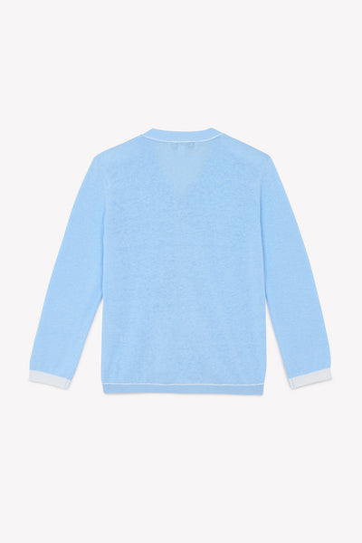 Wrap your little one in cloud-soft comfort with this charming blue cardigan featuring crisp white trim. Crafted from a breathable cotton and linen blend, it's perfect for layering over everyday outfits while keeping things breezy and cool. The classic button-down design makes dressing a breeze, and the gentle hue pairs beautifully with any wardrobe. Cozy, versatile, and oh-so-sweet—a wardrobe essential that grows with your child.