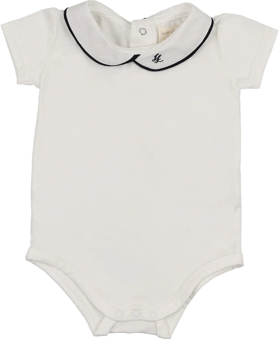 Lil Legs Analogie White/Navy Peter Pan Onesie With Piping PPOP-WHIN