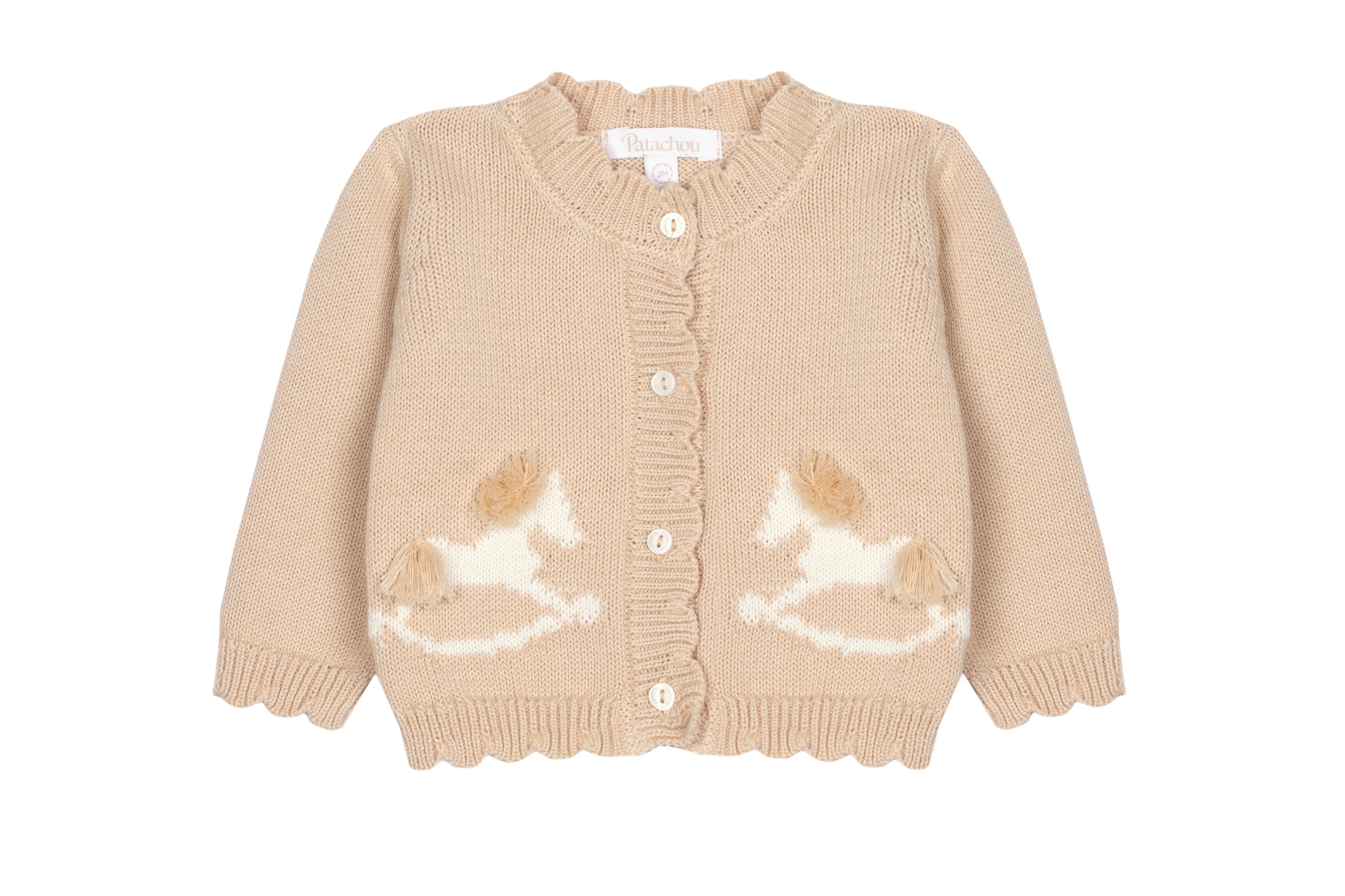 Patachou Beige Knit Horse Cardigan Sweater + Pant Set