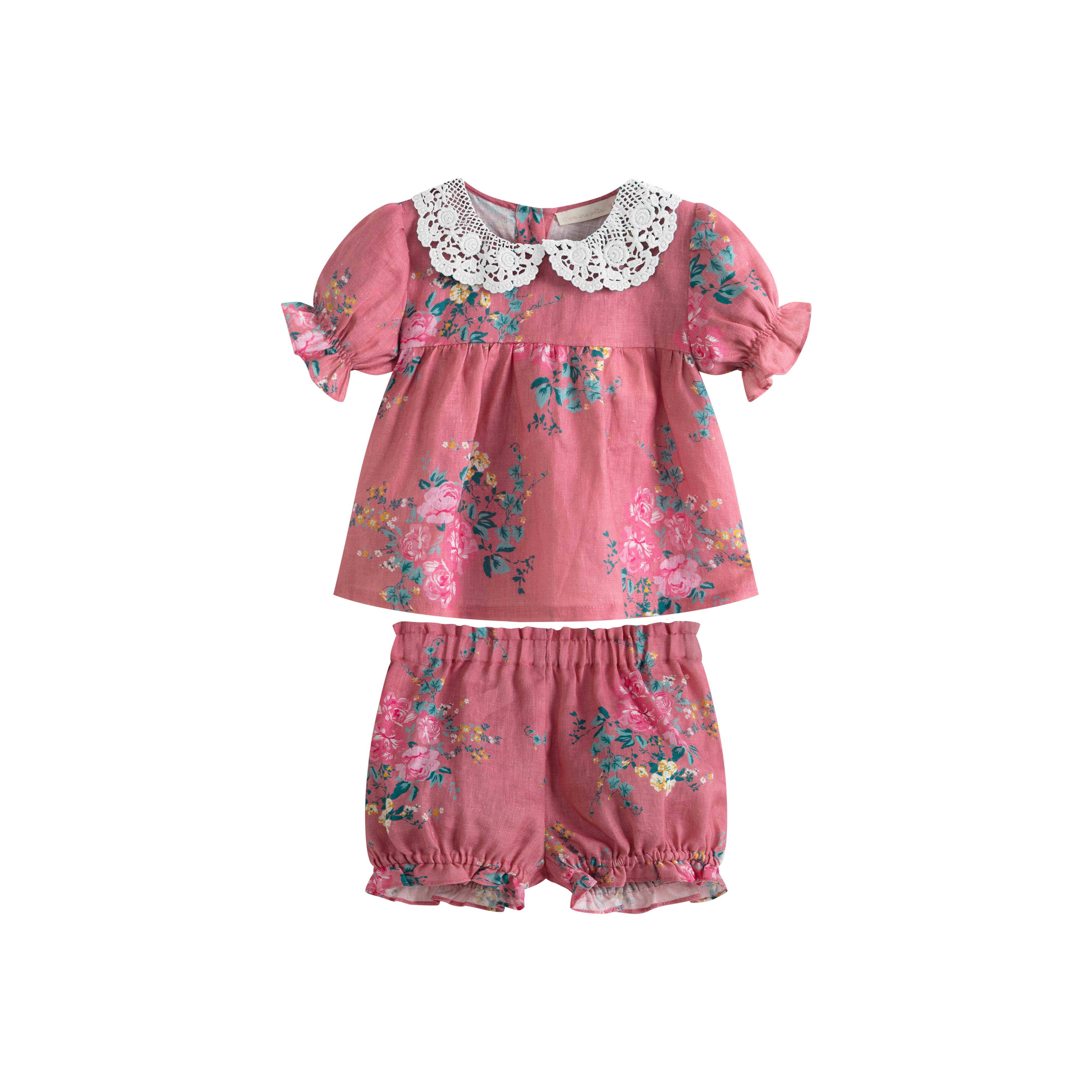 The C'era Una Volta Pink Flowers Franki Set presents an understated elegance for the discerning parent. This two-piece ensemble features a soft pink top and coordinating shorts, unified by a graceful floral pattern that speaks to refined taste. The cream collar adds a subtle contrast, lending a polished finish to the design. Thoughtfully constructed for comfort and style, this set transitions seamlessly from playtime to special occasions, offering your child both sophistication and ease of movement.
