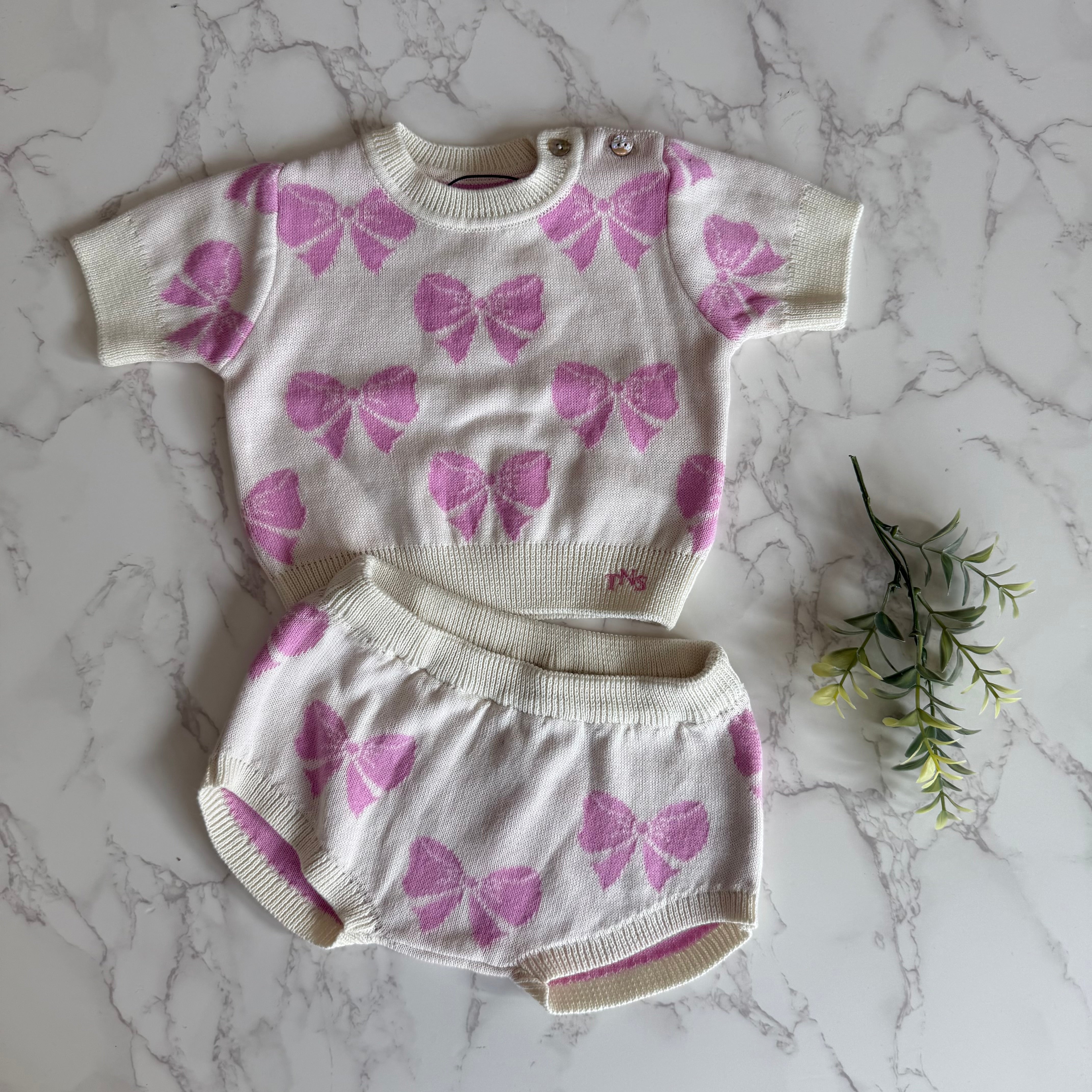 The New Society Baby Pink Lavender Bow Pinpilin Sweater + Bloomer Set