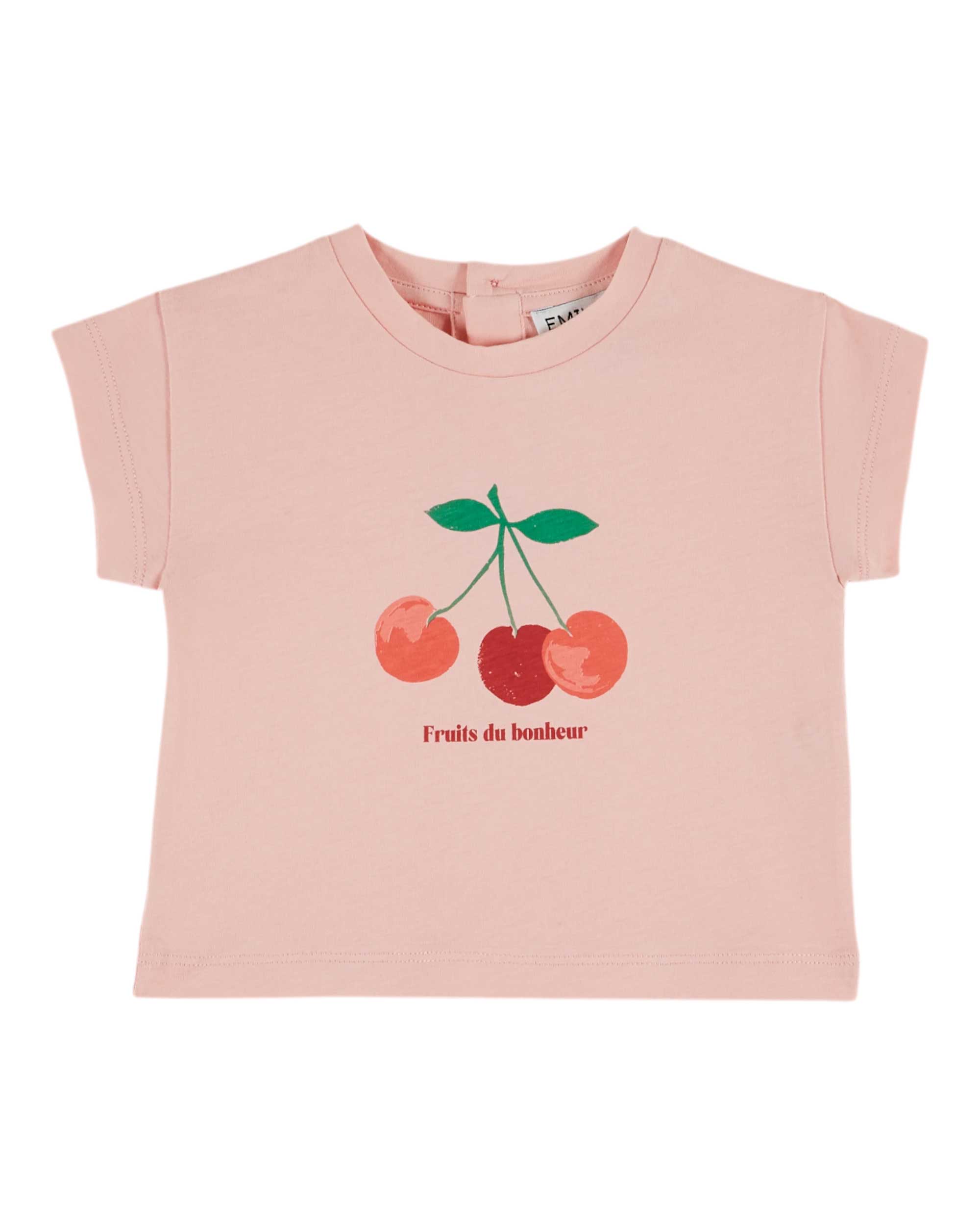 Brighten your little one's wardrobe with this cheerful pink tee featuring a vibrant red cherry graphic and "Fruit du Bonheur" (Fruit of Happiness) text. Perfect for adding a pop of color and whimsy to everyday outfits, this playful piece celebrates the joy of childhood with its sweet fruit-inspired design. Soft, comfortable, and bursting with personality, it's an instant favorite for kids who love fun, colorful style.