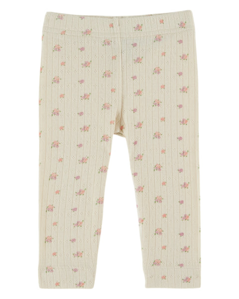 Soft, dreamy, and oh-so-sweet—this pointelle tee features a delicate floral print that brings a touch of whimsy to little ones' everyday style. The breathable cream fabric with its signature textured weave keeps things cozy without the bulk, perfect for layering or wearing solo. Gentle on sensitive skin and effortlessly charming, it's the kind of piece that makes getting dressed fun for both parent and child. Matching legging
