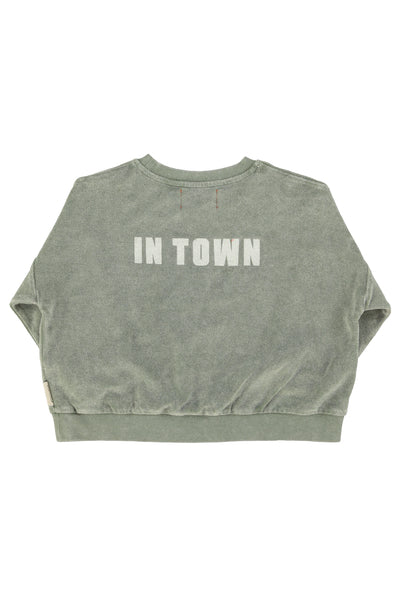 Celebrate friendship in cozy style with this organic terry cotton sweatshirt from Piupiuchick. Featuring a cheerful "best friend" graphic on the front and "in town" text on the back, it's perfect for showing off your squad vibes. The soft, washed green hue pairs beautifully with the ribbed hems for a polished finish. Made from sustainable organic cotton, this sweatshirt keeps you comfortable while making a statement about what matters most—your crew.
