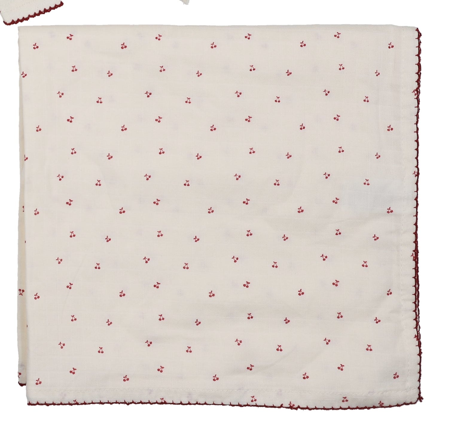Wrap your little one in sweetness with this charming cream baby blanket featuring a delightful red cherry print. The soft, gentle fabric is perfect for snuggles, tummy time, or stroller adventures. Adorned with a pretty scalloped edge that adds a touch of whimsy, this blanket becomes an instant nursery favorite. Machine washable and durable enough for everyday use, it's the cozy companion every baby deserves—and parents will love how easy it is to care for!