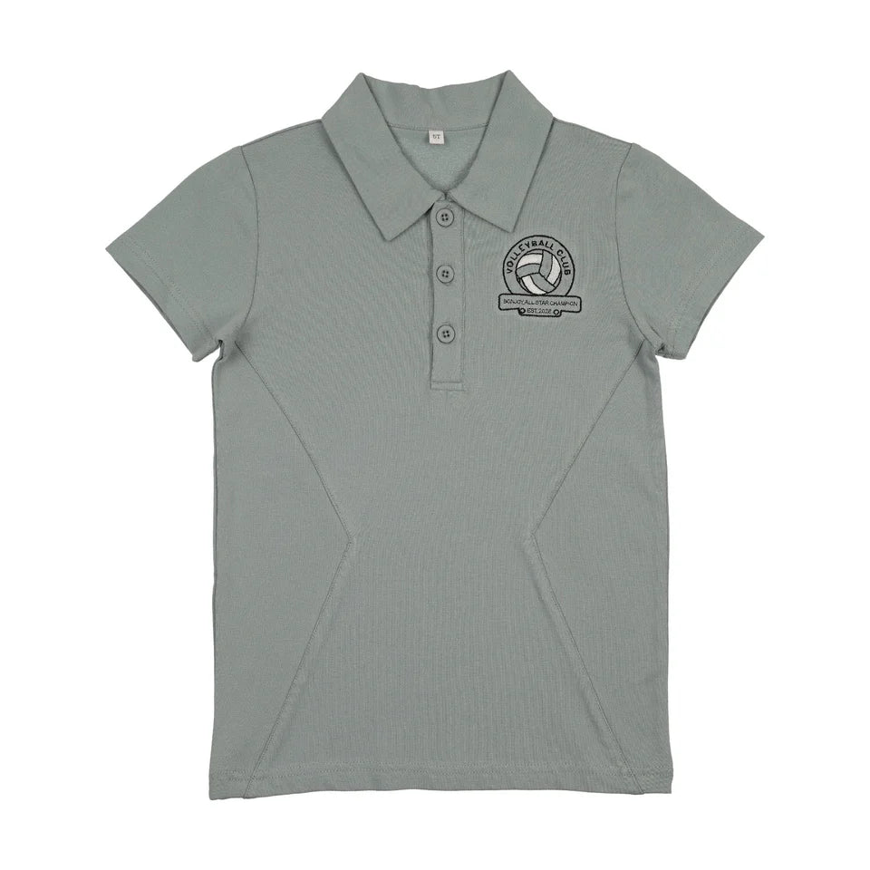 Serve up style in this cloud blue polo featuring sharp paneling that flatters your frame. The volleyball club graphic brings sporty flair to a classic wardrobe staple—perfect for game day, casual outings, or whenever you want to show your athletic spirit. Comfortable enough for all-day wear, this polo blends performance with personality.
