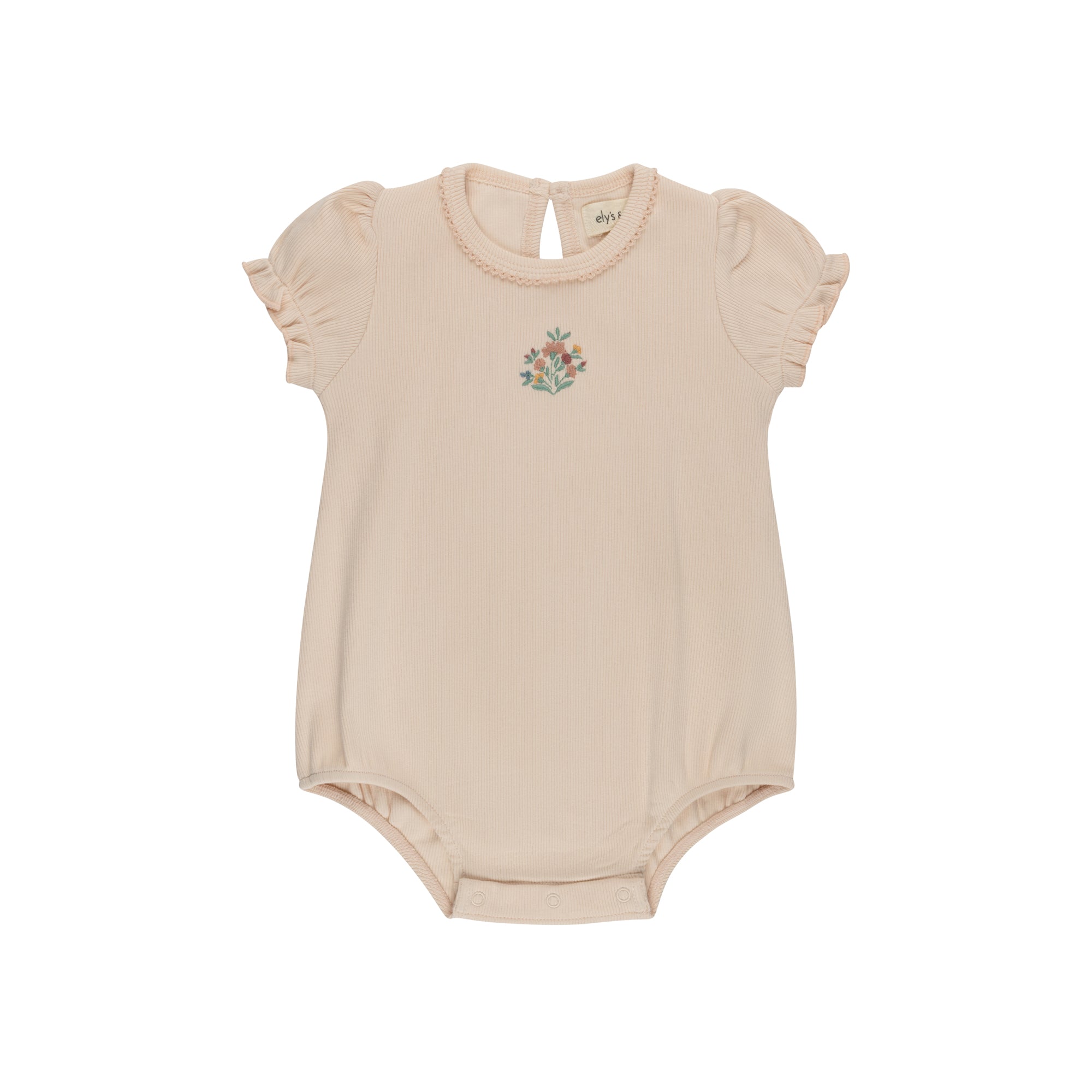 Meet the romper that's as sweet as it is stylish. This pink ribbed design from Ely's & Co features charming floral embroidery that brings a touch of garden-inspired whimsy to playtime. The soft, stretchy ribbed fabric moves with your little one, while the delicate embroidered details add personality and flair. Whether it's a special occasion or everyday wear, this romper combines comfort with undeniable charm—the perfect piece for capturing those adorable moments.