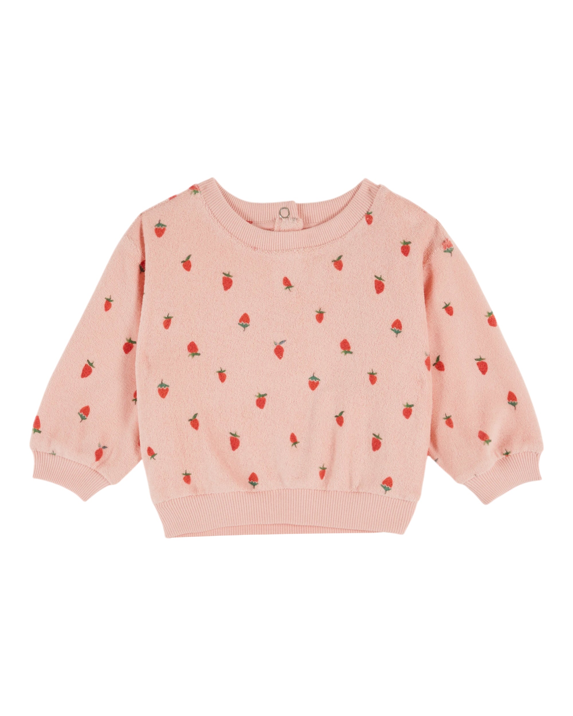 Emile et Ida Baby Pink Strawberries Terry Sweatshirt + Legging Set