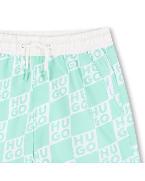 The Hugo Green Logo Surfer Swim Trunks deliver refined style for water and leisure. An all-over Hugo print creates visual interest across the fabric, while the elastic waistband ensures a secure, comfortable fit for active pursuits. Designed in a sophisticated green palette, these trunks balance contemporary aesthetics with functional beach wear. The quality construction withstands chlorine and saltwater exposure, making them equally suited for poolside relaxation or coastal adventures. A polished choice for the discerning swimmer.