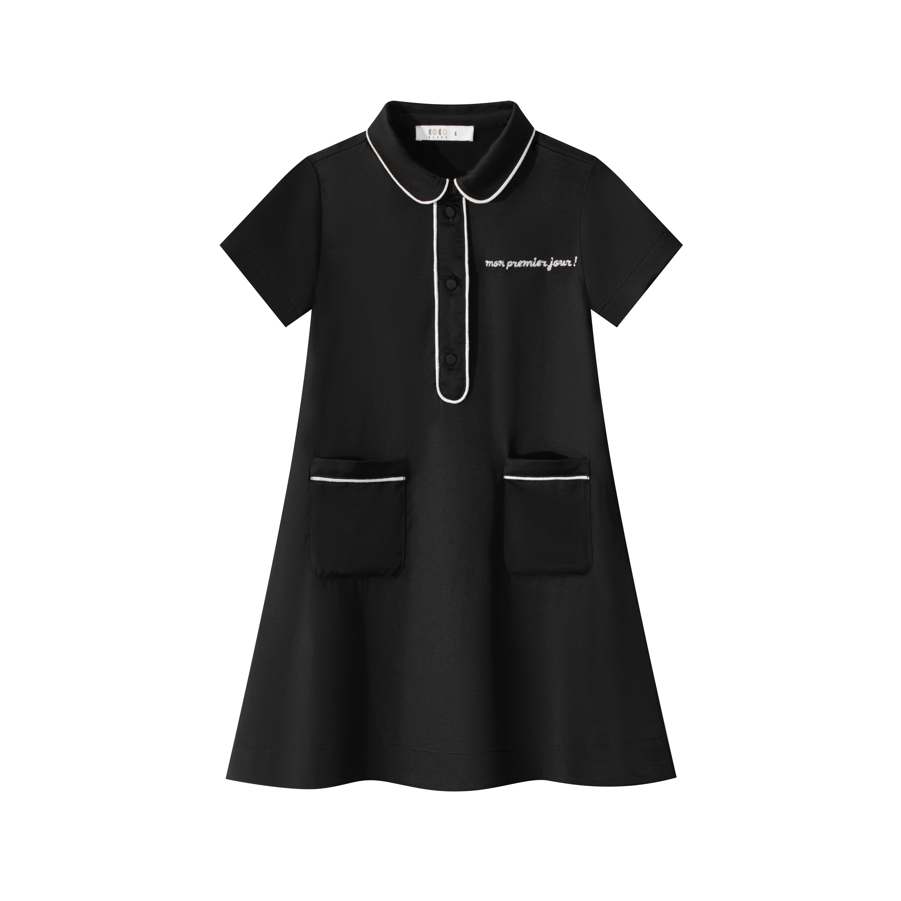 Elevate your wardrobe with this refined black silk shirt dress, featuring crisp white piping that adds a touch of understated elegance. The structured silhouette flatters effortlessly, while the luxurious silk fabric drapes beautifully against the skin. Perfect for transitioning from day to evening, this versatile piece pairs seamlessly with heels, flats, or sneakers. A timeless essential that exudes quiet sophistication.