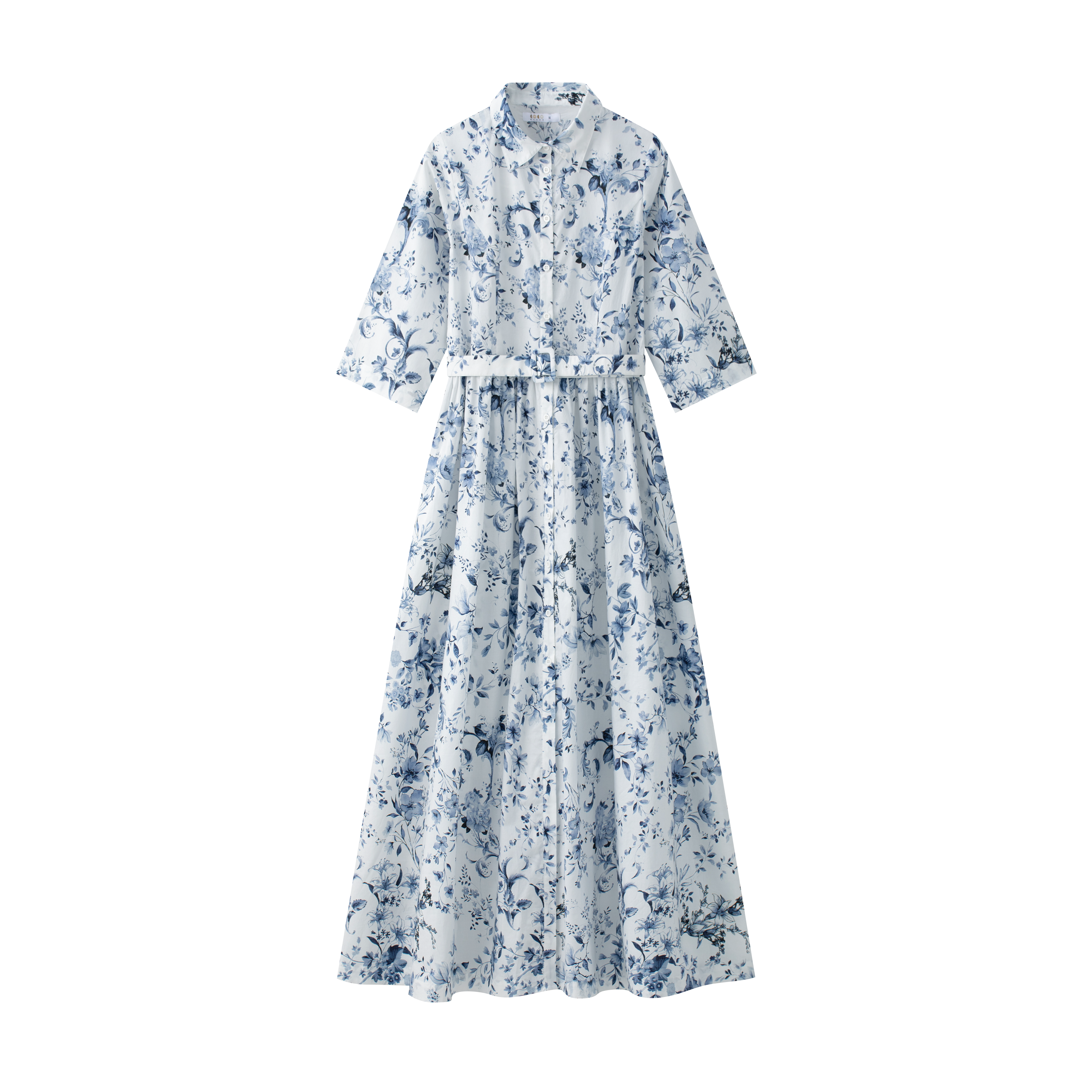 Introducing the Coco Blanc Floral Shirt Dress—where timeless tailoring meets botanical beauty. This versatile shirt dress features a graceful blue floral print that brings life and movement to a classic silhouette. The structured shirt-style design offers polished sophistication, making it equally at home at the office, brunch, or weekend getaways. Button it up for a crisp, professional look or leave the top undone for relaxed elegance. Cinch it at the waist with a belt to define your silhouette, or let it flow freely for effortless comfort. A wardrobe essential that transitions seamlessly from day to evening.