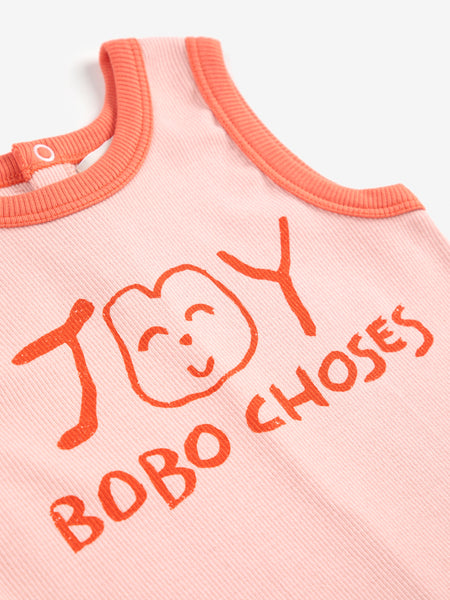 Playful and charming, this light pink playsuit is great for warm days. Crafted from 94% organic cotton and 6% elastane, it offers a straight fit with a relaxed crotch and wide round neck. Sleeveless with back and crotch snap fastening, it features embroidery details and a patch pocket for a fun and functional design. Made in Spain with care for the future.