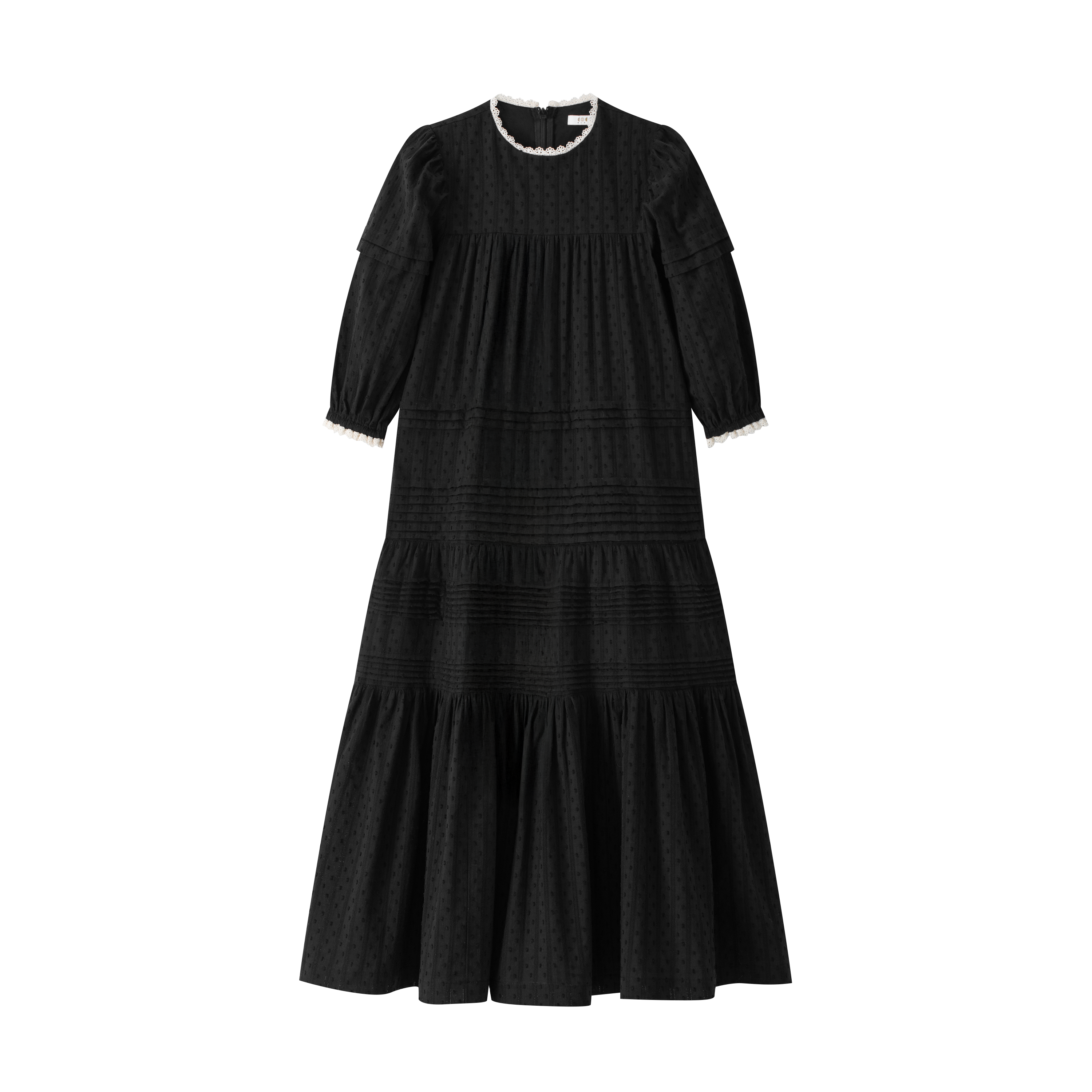 Elevate your evening wardrobe with the Coco Blanc Black Maxi Dress, a timeless piece that seamlessly blends elegance with modern detail. The flowing black silhouette is adorned with delicate dotted accents and refined white lace trim, creating a striking contrast that draws the eye. Perfect for formal occasions, date nights, or upscale gatherings, this maxi dress offers a polished look that feels both classic and contemporary. The sophisticated design ensures you'll make a memorable impression wherever the occasion takes you.
