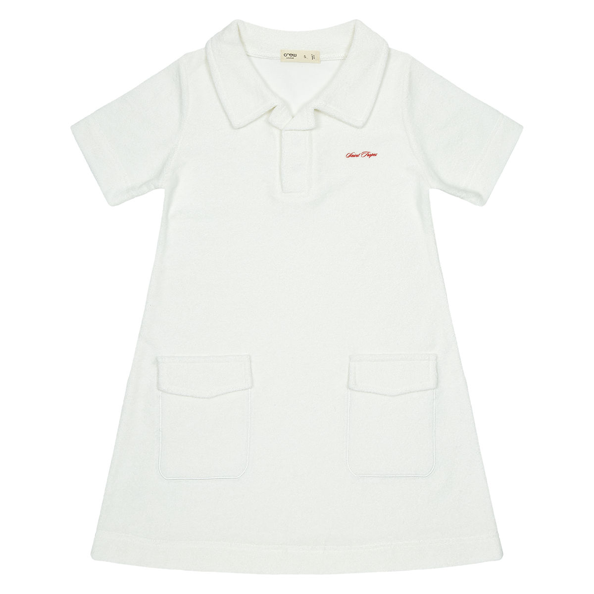 Beach days just got cuter! This white terry dress is the ultimate cover-up for poolside adventures. Soft, absorbent fabric keeps your little one comfy whether they're splashing in the water or lounging by the shore. A tiny "Saint Tropez" text adds a touch of coastal charm and wanderlust vibes. Easy to slip on and off, it's the perfect companion for sun-soaked memories and seaside fun.