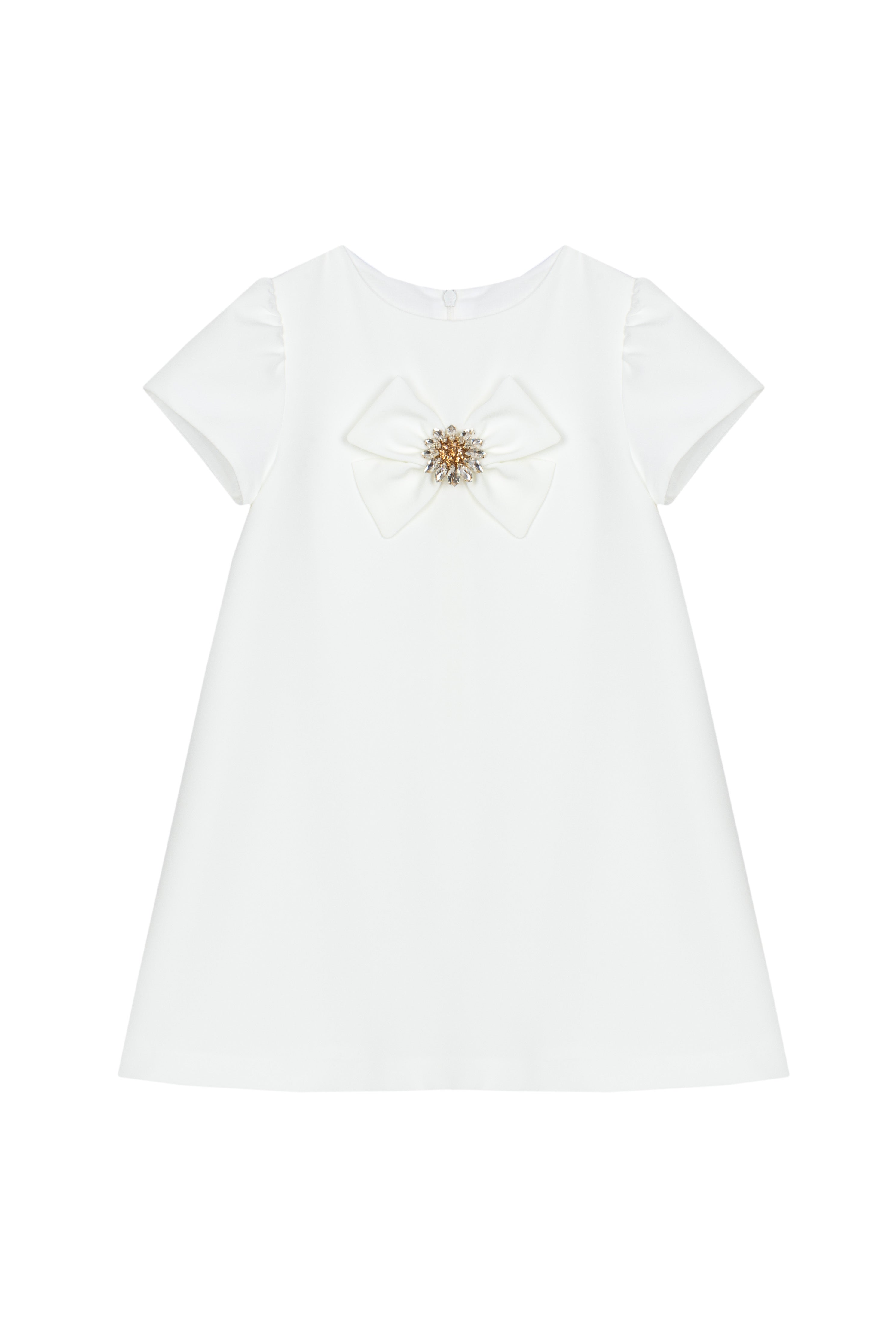 Elevate your little one's wardrobe with this charming ivory bow dress from Patachou. Crafted with refined elegance, the short sleeves offer comfortable everyday wear while the signature bow detail adds a touch of timeless sophistication. Perfect for special occasions or dressed-down styling, this piece seamlessly transitions from season to season. The soft ivory hue pairs effortlessly with any accessory, making it a versatile staple for the discerning parent who values quality and grace.