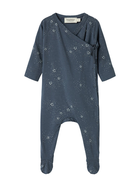 Wrap your little one in celestial comfort with our Marmar Copenhagen Starry Night Rubetta Onesie! This navy blue footed wrapover design sparkles with a playful star print, while the dreamy blend of modal, organic cotton, and elastane creates the perfect snuggly fit for bedtime adventures. Easy to put on and super soft against delicate skin!