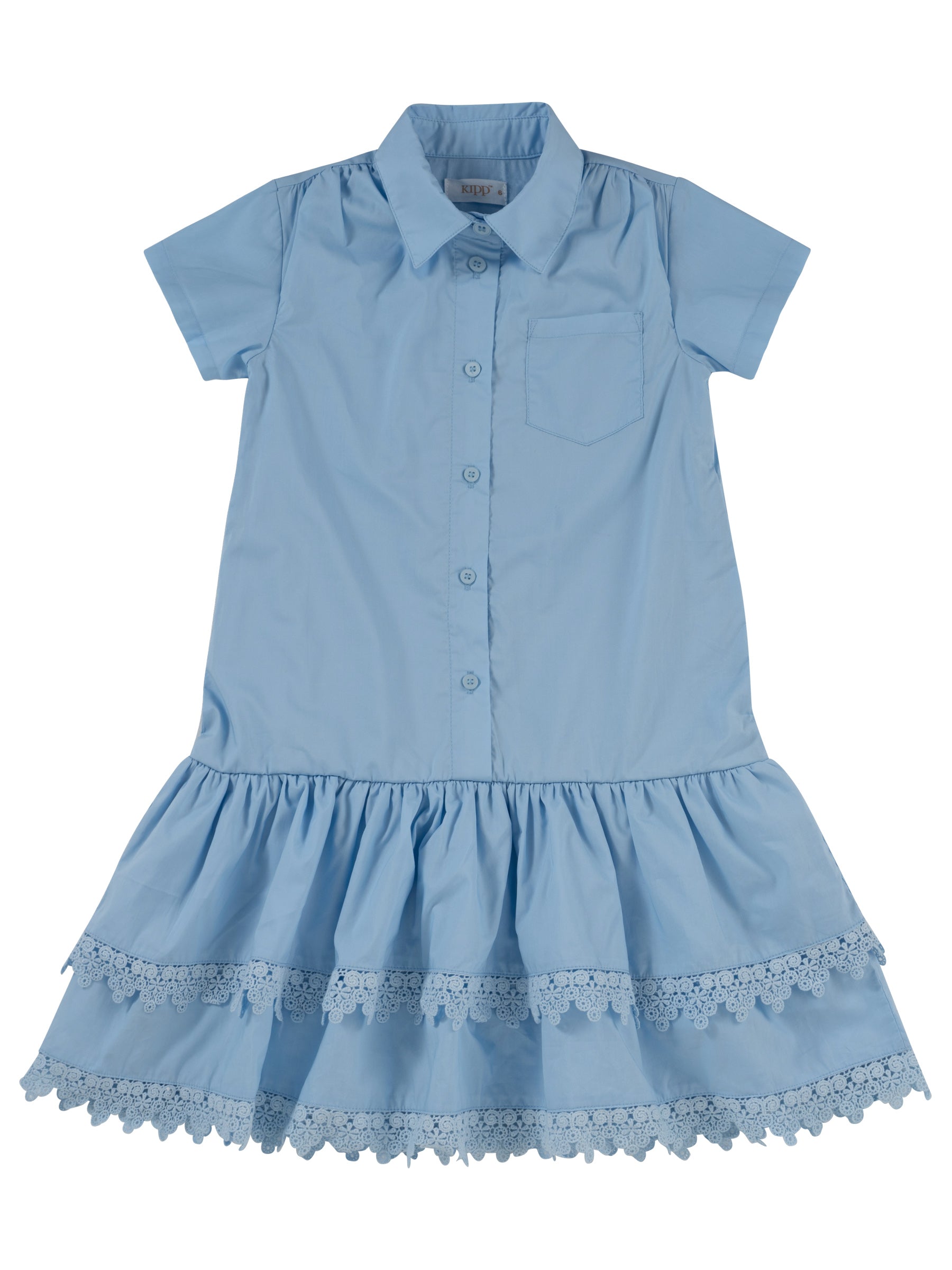 The Kipp Blue Zoe Dress combines classic elegance with contemporary charm. This sophisticated piece features a crisp collar and button-front closure for a polished silhouette, while the tiered skirt adorned with delicate lace detailing adds movement and feminine grace. The rich blue tone works seamlessly for both professional settings and refined social occasions. A versatile investment piece that transcends seasons and trends.