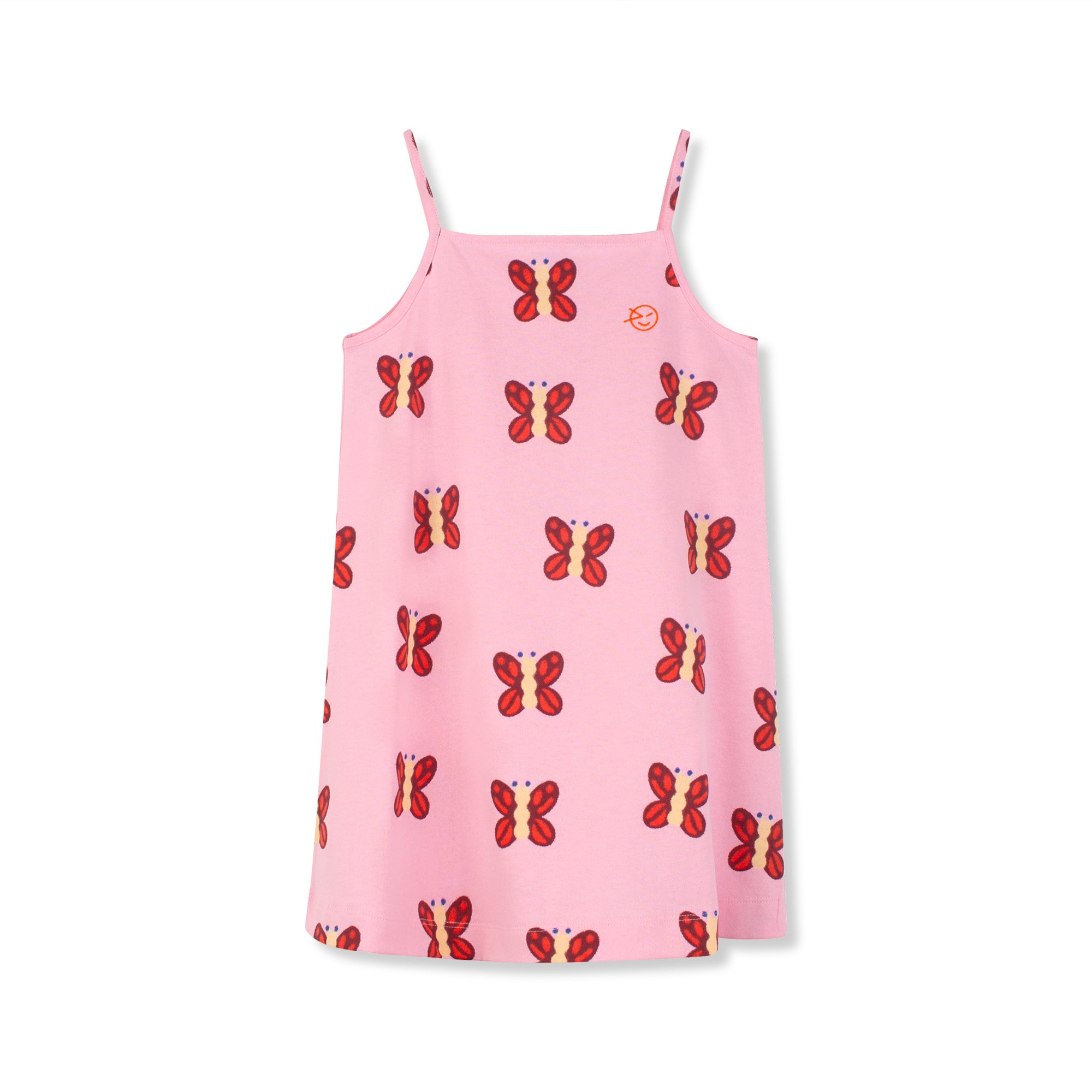 Twirl in style with this adorable sundress featuring a soft pink base adorned with vibrant red butterflies fluttering across the fabric. Perfect for warm days and carefree adventures, this kite-cut design offers a flattering silhouette that moves beautifully with every step. The cheerful butterfly print brings a whimsical touch to your wardrobe, making it an instant favorite for playdates, picnics, or just spreading joy wherever you go. Sweet, charming, and utterly delightful!