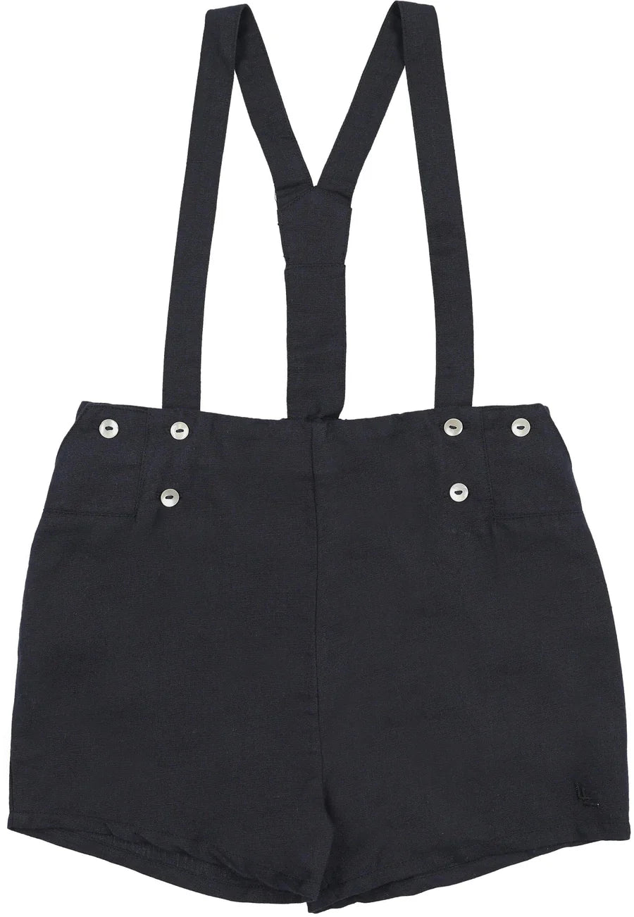 Lil Legs Analogie Navy Linen Suspender Shorts SSHOR-NAVY