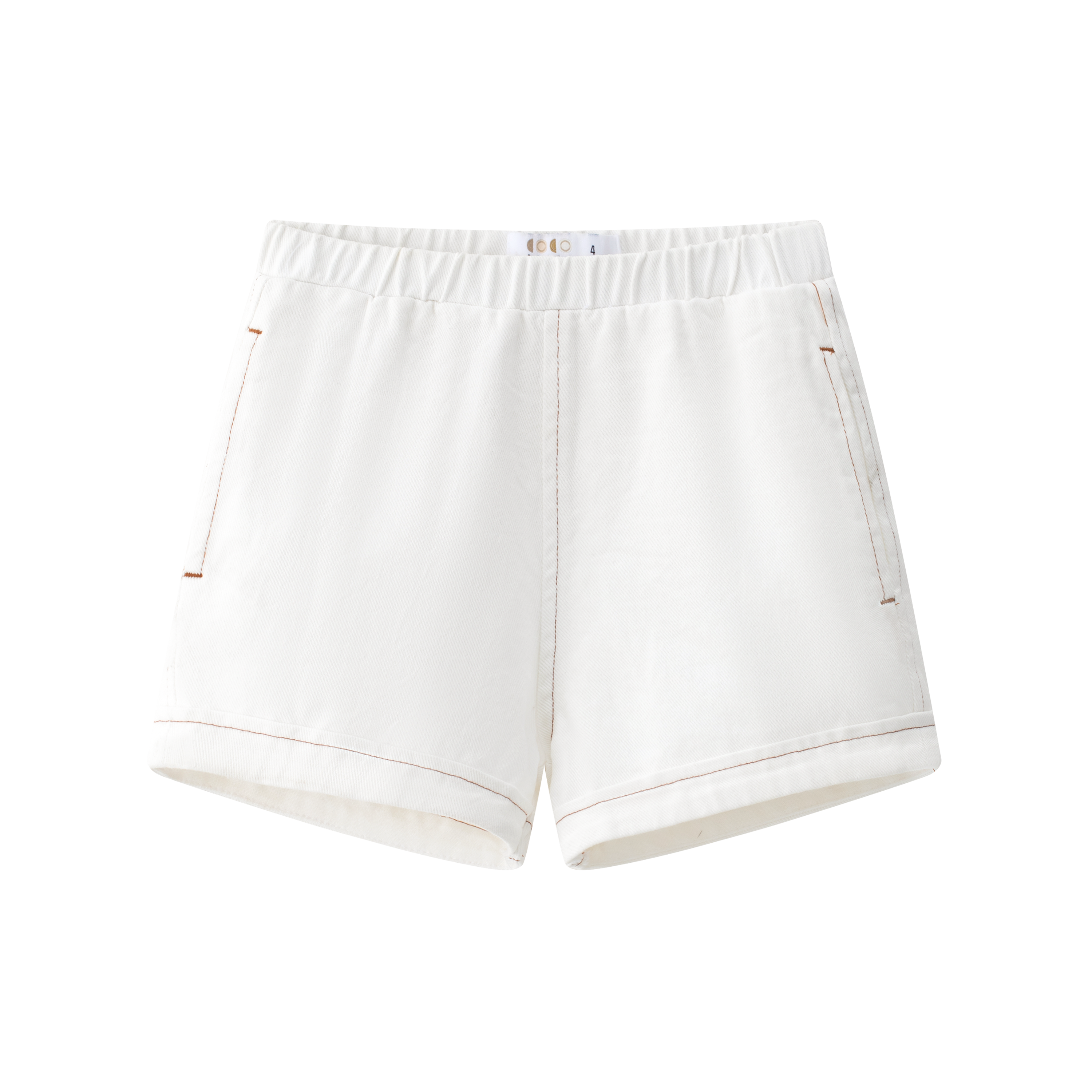 Discover refined simplicity with these white denim shorts, crafted for modern elegance. Contrast stitching adds subtle visual interest while maintaining a polished aesthetic, and a distinctive back pocket detail elevates the design with understated character. Perfect for warm-weather dressing, these shorts pair seamlessly with everything from crisp button-ups to flowing blouses. Versatile enough for casual outings or dressed-up occasions, they're a wardrobe staple that transcends seasons.