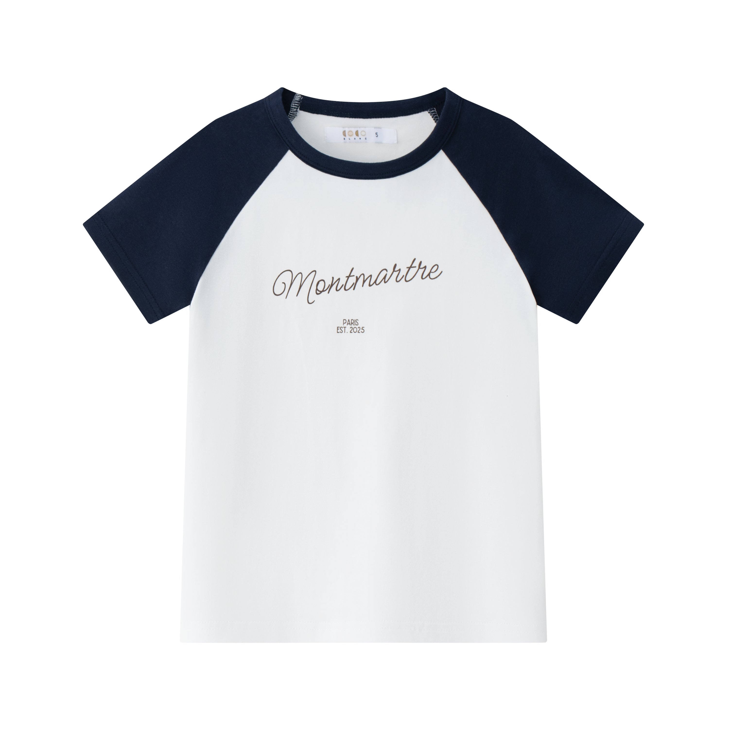 Parisian vibes meet casual comfort in this charming raglan tee. Crisp white body pairs perfectly with navy sleeves for a classic color-block look, while the Montmartre text adds a touch of French flair and wanderlust. Perfect for anyone who dreams of strolling through Paris or simply wants to channel that effortless European style. Soft, versatile, and endlessly wearable—your new go-to for laid-back days with personality.