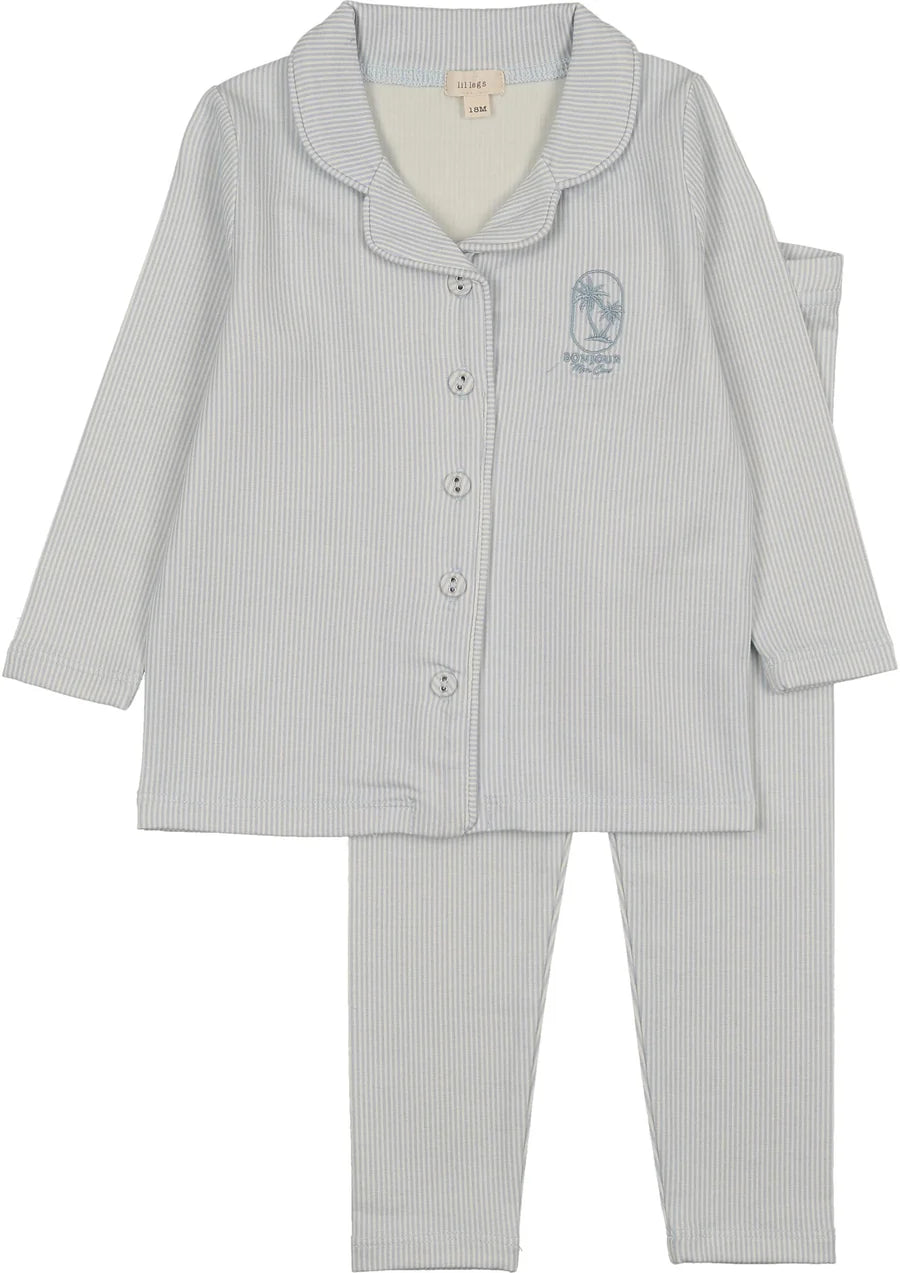 Sail into dreamland in these charming blue striped pajamas! Featuring classic sailor stripes and a sweet little graphic with text, this cozy lounge set is perfect for bedtime adventures or lazy days at home. Soft, comfortable, and oh-so-cute, your little one will love snuggling up in this playful set. Ideal for kids who appreciate nautical vibes and timeless style.