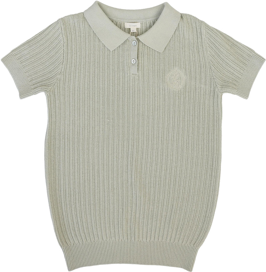Elevate your little one's wardrobe with this refined knit polo in a soft shrub green hue. Crafted from quality knit fabric, this piece offers both comfort and polish for everyday wear or special occasions. The subtle emblem detail adds a touch of understated elegance, making it a versatile staple that pairs effortlessly with any ensemble. Perfect for the discerning parent seeking timeless style with a modern sensibility.