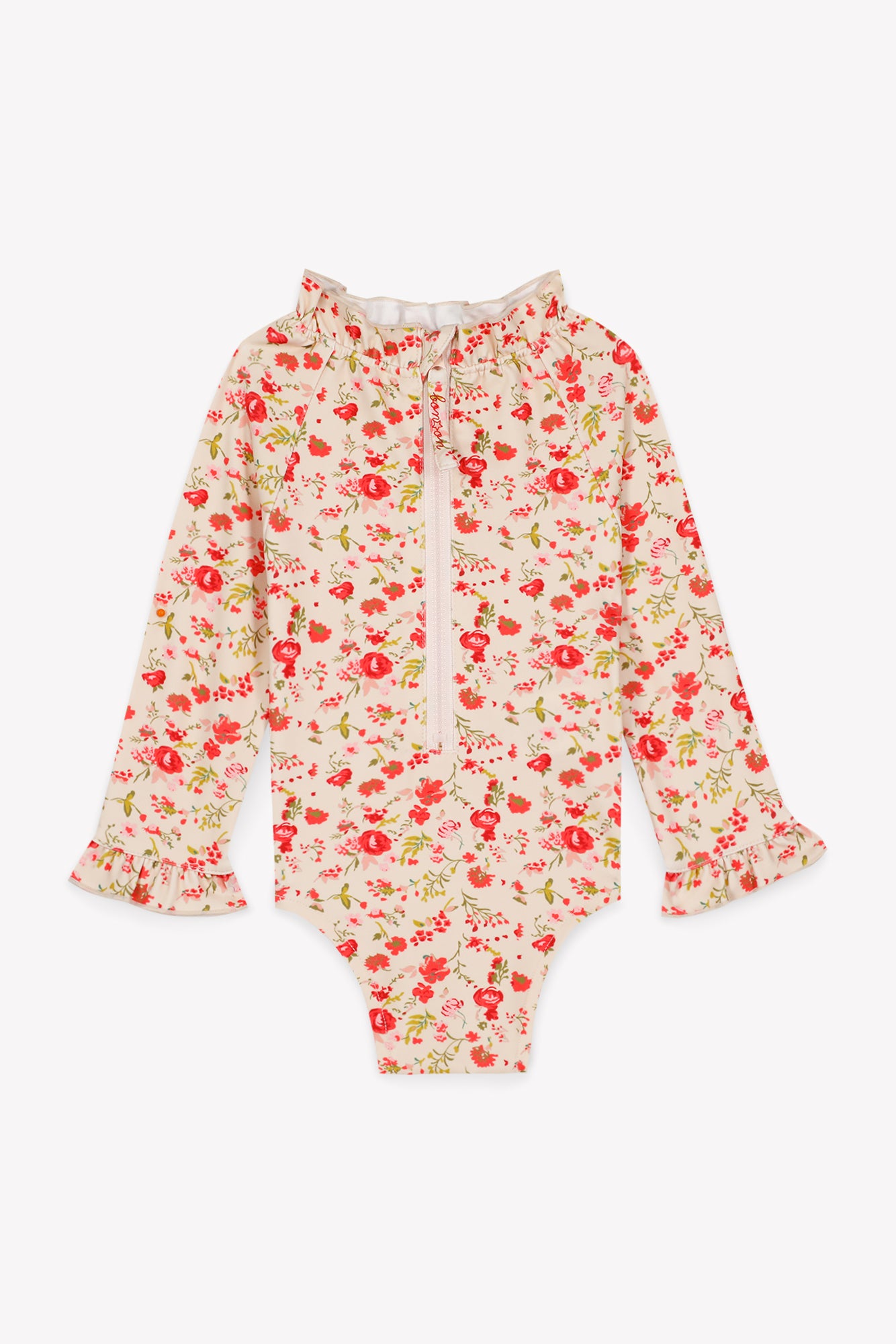 Make a splash with the Bonton Fleurs Indiennes Baby Swimsuit, where vibrant florals meet fun-loving style. This charming long sleeve one-piece features a gorgeous floral print inspired by Indian botanicals, paired with delicate details that add a playful twist to your poolside look. Perfect for sun-soaked days and water adventures, it combines comfort with personality. Dive into summer with confidence and flair.