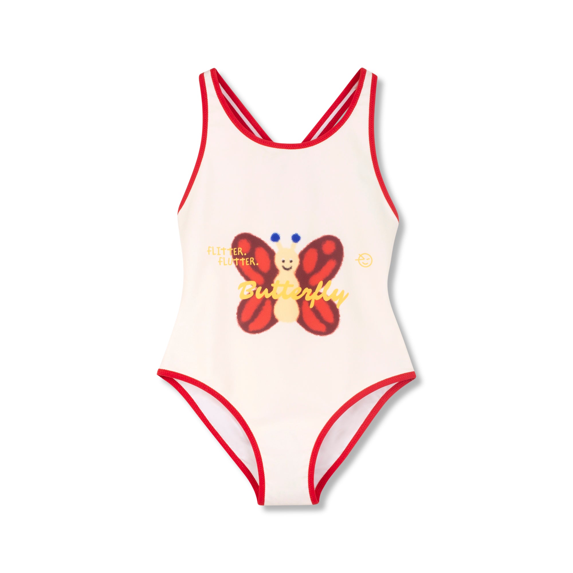 Dive into summer style with the Wynken Ecru Flutter Flutter Swimsuit! This charming one-piece features a soft ecru base paired with a delightful butterfly design and playful "flutter flutter" text that captures pure joy. Perfect for little swimmers who love whimsy and movement, this suit combines comfort with personality. The timeless ecru tone pairs beautifully with any beach day, while the cheerful butterfly motif adds that extra spark of fun your child will adore.