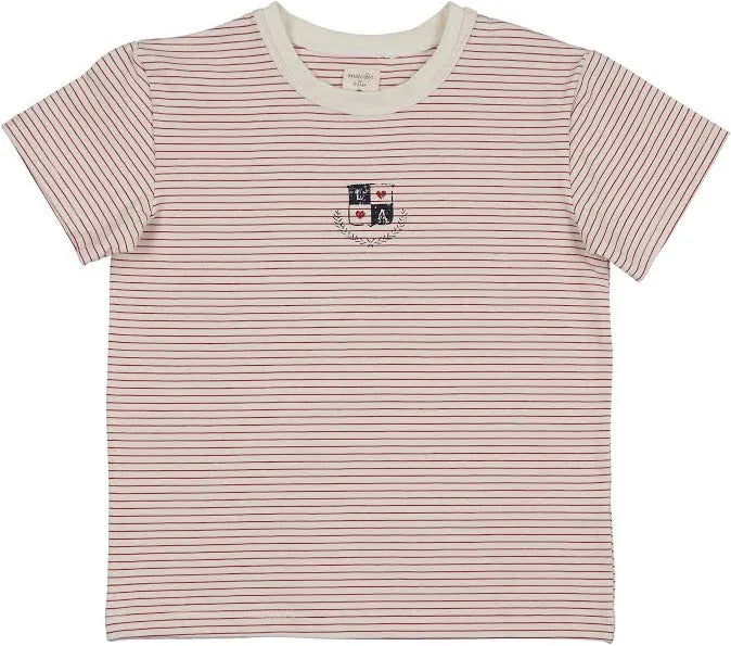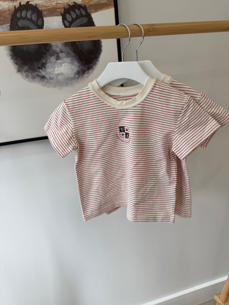 Effortlessly chic, this red stripe short sleeve tee combines timeless style with everyday comfort. The classic striped pattern adds visual interest while the relaxed fit ensures all-day wearability. Perfect for layering or wearing solo, this versatile piece transitions seamlessly from casual outings to relaxed social gatherings. A wardrobe essential that pairs beautifully with denim, skirts, or tailored trousers for an understated, polished look.