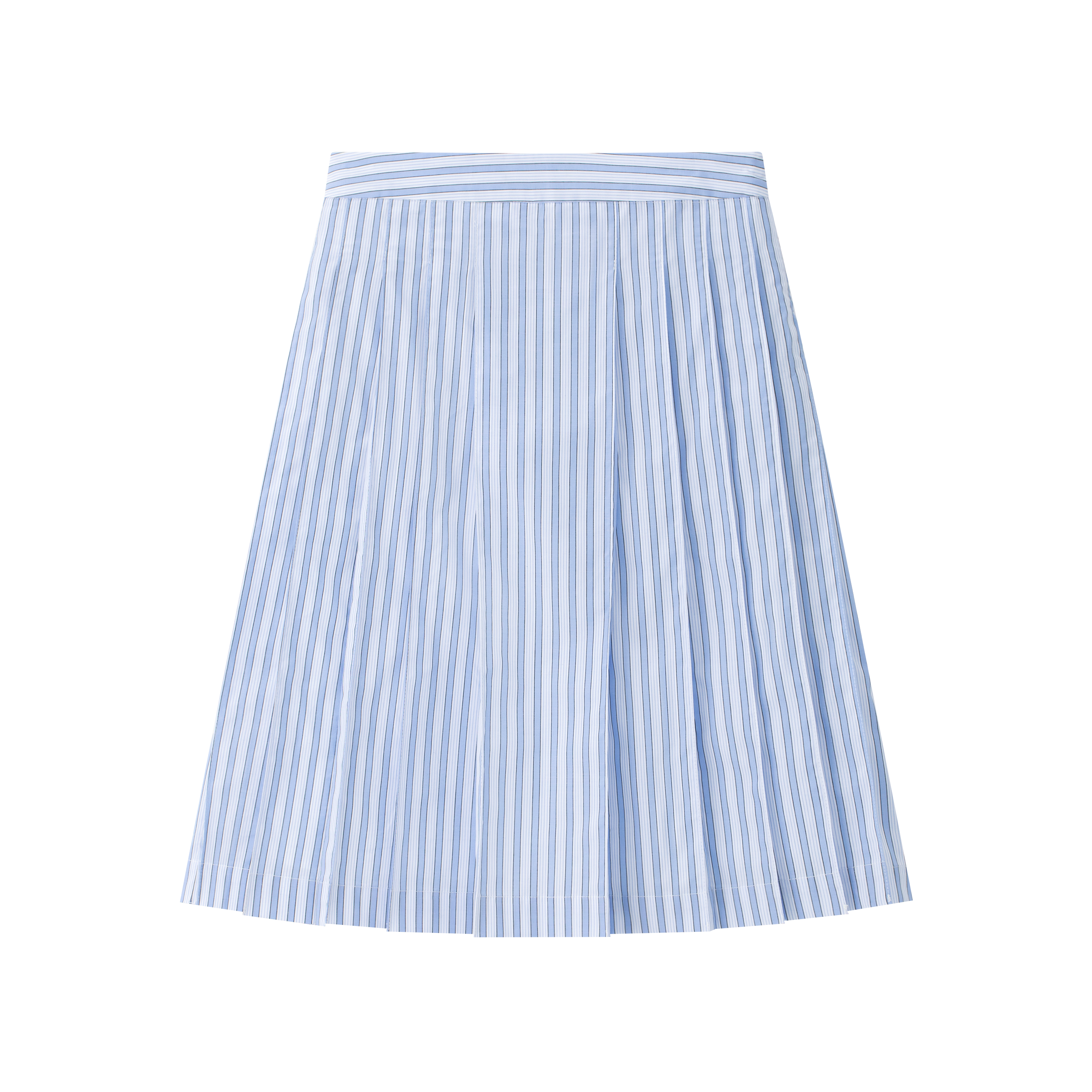 Elevate your wardrobe with this refined striped pleated skirt, a timeless piece that effortlessly transitions from office to evening. The crisp blue stripes create visual interest while the structured pleats offer graceful movement and a flattering silhouette. Crafted with attention to detail, this skirt pairs beautifully with tailored blouses, fitted sweaters, or delicate tops. A versatile essential that brings polished elegance to any occasion.