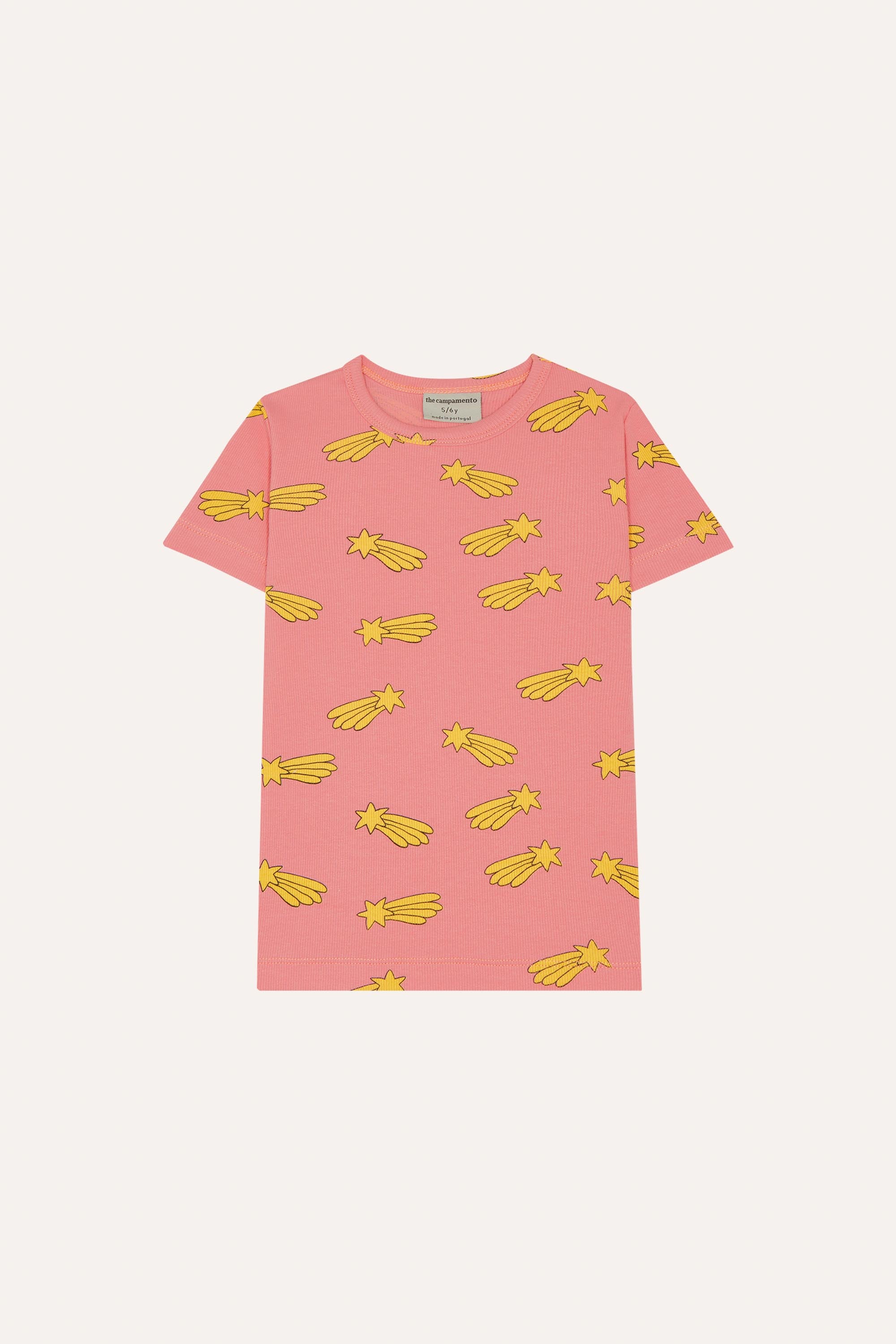Twinkle, twinkle, little star—this pink tee is out of this world! Covered in cheerful yellow shooting stars, it's the perfect way to add a splash of cosmic fun to any outfit. Soft, comfortable, and bursting with celestial charm, this playful piece is ready for adventures big and small. Whether you're stargazing or just spreading joy, this tee brings the magic wherever you go.