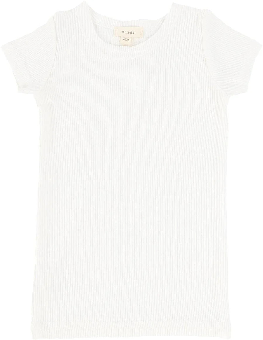Indulge in luxury with our Lil Legs Winter White Ribbed Short Sleeve Tee. The ribbed fabric and short sleeves create a chic, sophisticated look. Stay stylish and comfortable all season long in this must-have piece. Elevate your wardrobe with this exclusive, timeless tee.
